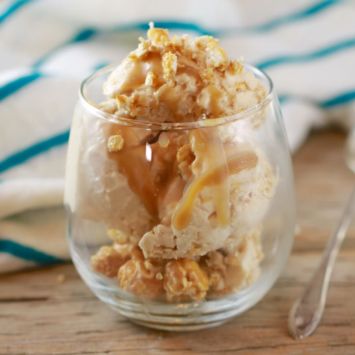 A dessert mash up is where two delicious things come together to become one. That’s a perfect way to describe my Caramel Corn Ice Cream: Caramel Popcorn & Ice Cream. They’re yummy by themselves and even better together.