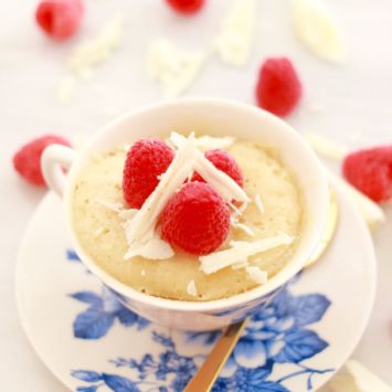 This White Chocolate & Raspberry mug cake is a well-balanced marriage of both sweet and fruity.