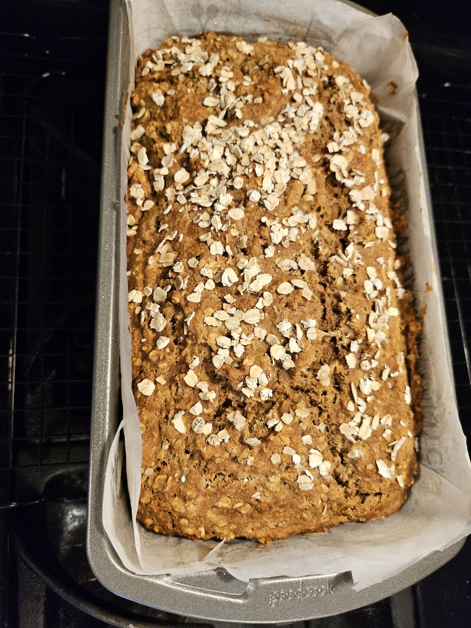 - Combine the wet and dry ingredients and add to pan: Mix the wet and dry until just combined, then spread into the prepared pan. Sprinkle the loaf with the remaining 1 tablespoon of oats.