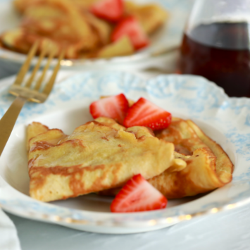 Let’s face it: no crepe is complete without toppings. I encourage you guys to get creative and add whatever you and your family like. From coconut whipped cream and fresh banana, to nut butters and honey, it’s pretty endless. My personal favorite way to eat a crepe is with a drizzle of maple syrup and fresh berries.