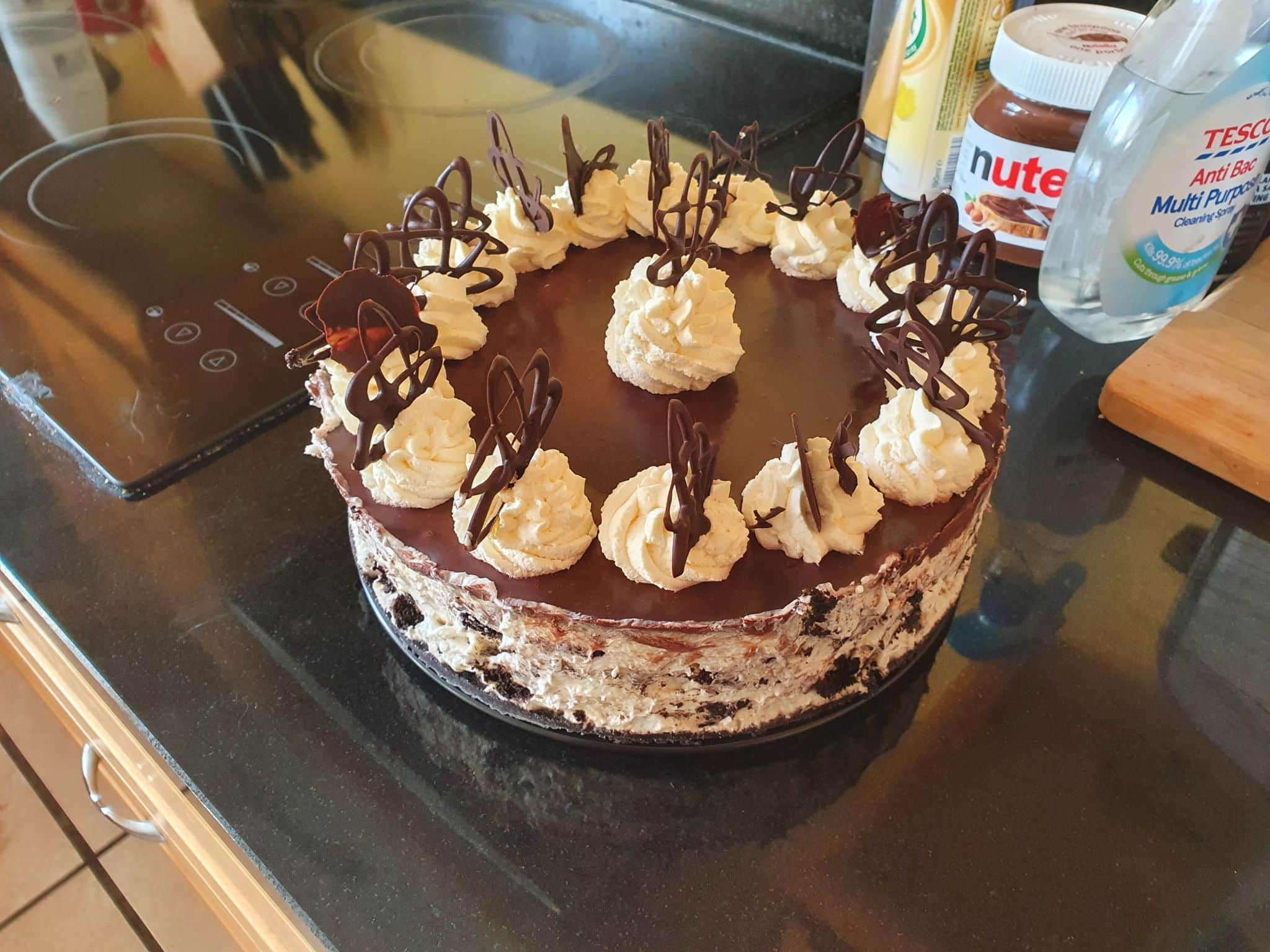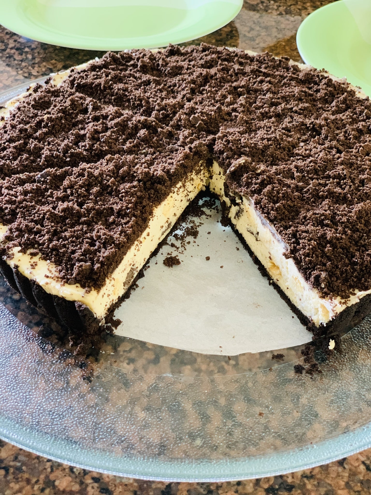 - To remove from the tin run a palette knife or thin spatula around the edges to free it from the tin. Serve with whipping cream and garnish with mini Oreos. Enjoy!