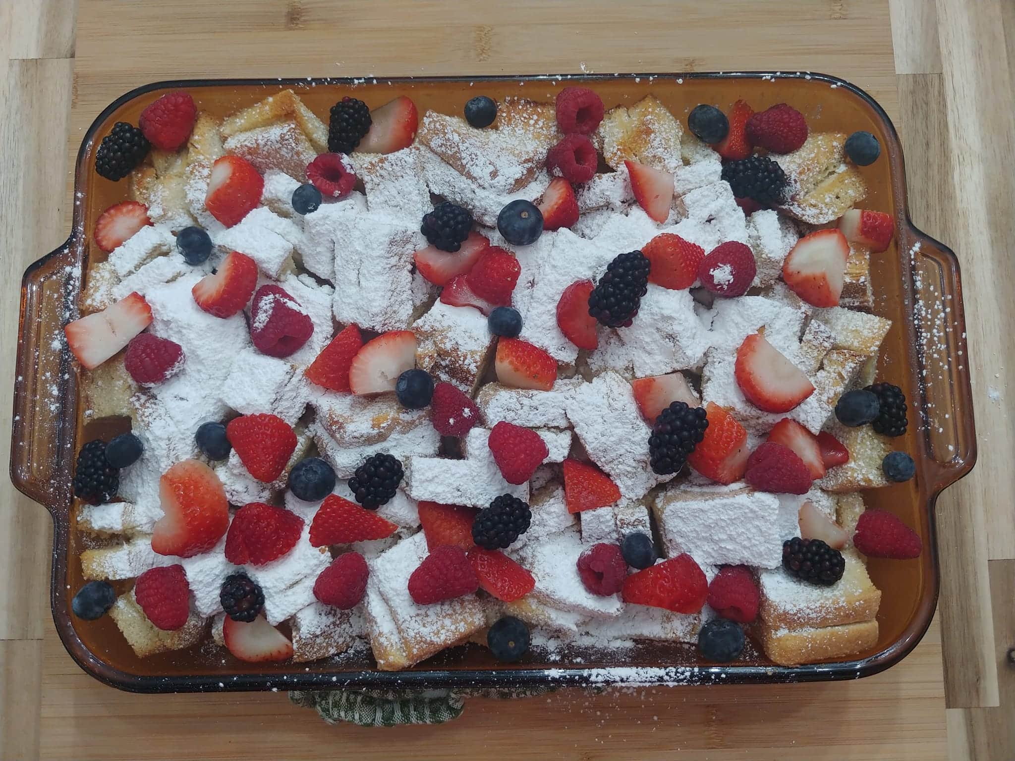 - Serve the French Toast warm with maple syrup or fresh fruit and berries!
