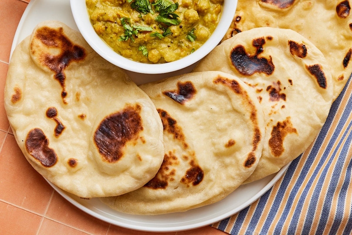 - Plain, whole-milk (full-fat) yogurt gives the naan tenderness and contributes to a pliable texture.