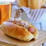 Place the hot dog buns on a lined baking sheet, seam-side down, cover with plastic wrap and proof for 45 to 60 minutes, until puffed slightly and the dough no longer springs back when poked.
