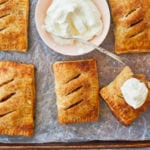 Cut into eight 4.5x6 inch (12x15cm) rectangles and transfer to your prepared baking sheets. You can re-roll this pastry and make even more pies.