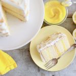 Slice the cakes in 2 to create 4 layers. Generously spread the lemon curd between the layers of the cake.